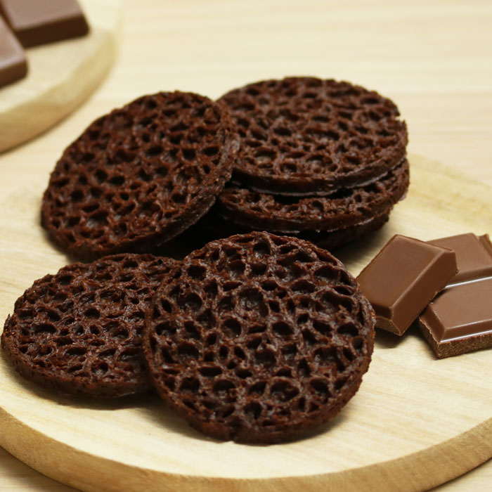 薄い、さくさくのワッフルですので、配送中割れる可能性がございます。ご了承の上、ご注文ください。
